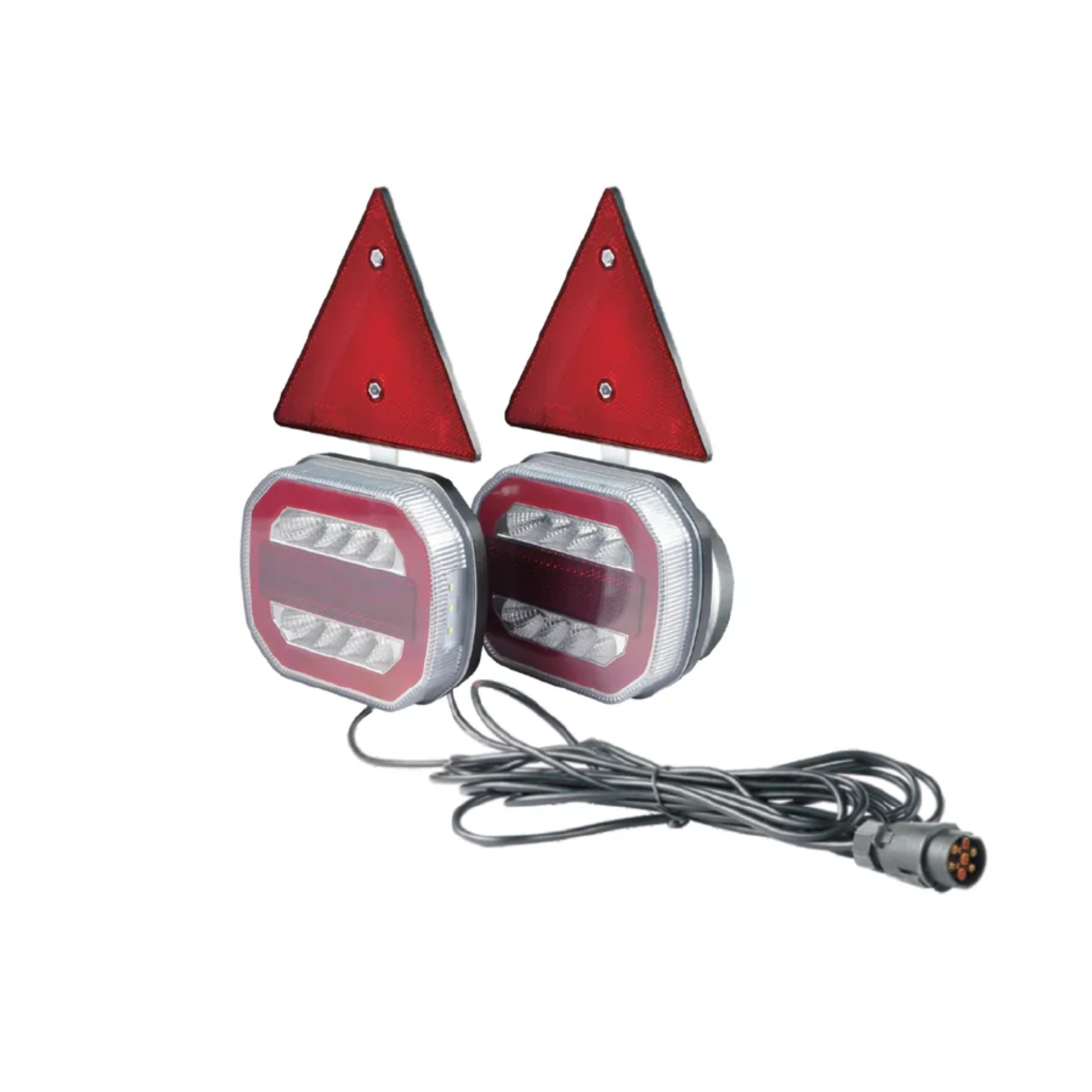Set Fanali posteriori 55 Led neon con magnete e triangolo per rimorchi - Luci di coda, stop, indicatore di direzione, targa, catarifrangente - 12V-24V